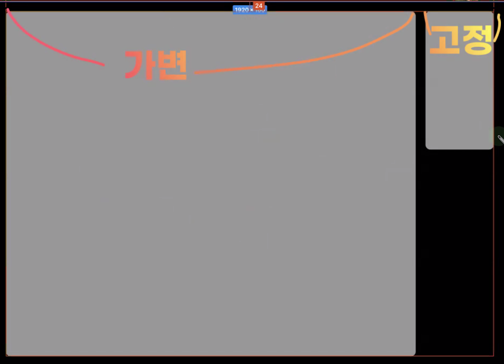 가변은 화면 사이즈가 변동 될때마다 자유자재로 변형 되는 반면 고정은 말 그대로 고정이다.