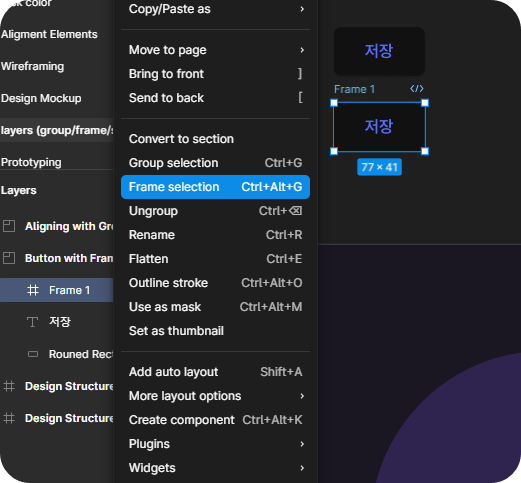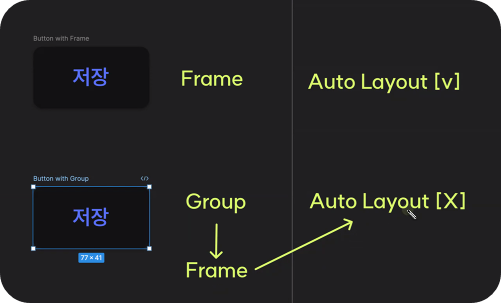 각 버튼의 어떤 구성을 가지고있는지를 그룹화한 상태로 프레임을 만든다.