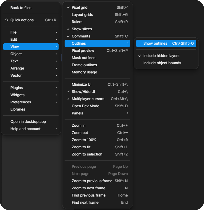 아웃라인 뷰 = 컨트롤+쉬프트+o