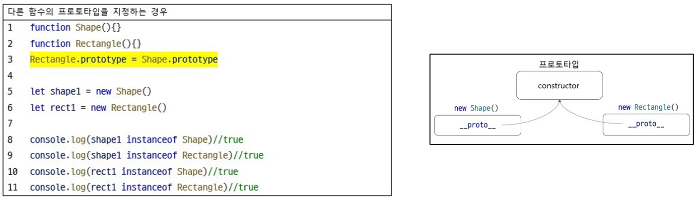 ▶ 다른 함수의 프로토타입을 그대로 자신의 프로토타입으로 지정하는 경우의 instanceof