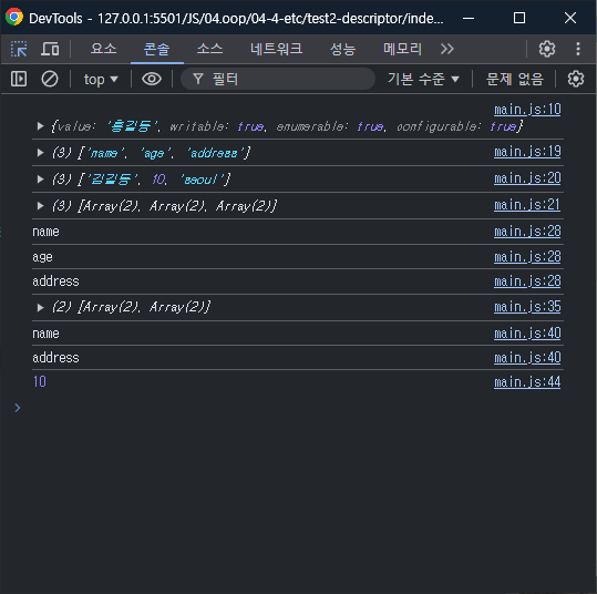 console.log(Object.values(obj))//['김길동', 10, 'seoul']