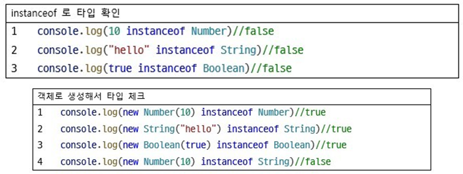 • instanceof 는 객체의 타입이 특정 타입인지를 판단하기 위한 연산자이며