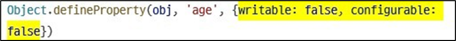 • writable 은 프로퍼티의 값을 변경하지 못하게 할 때 이용한다.