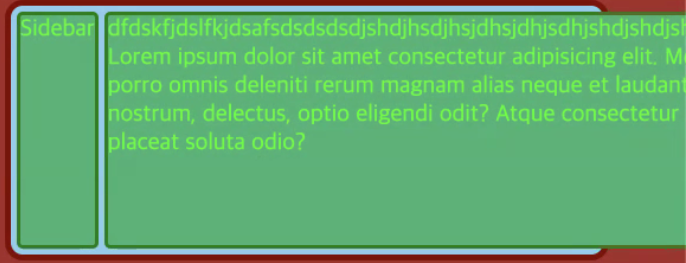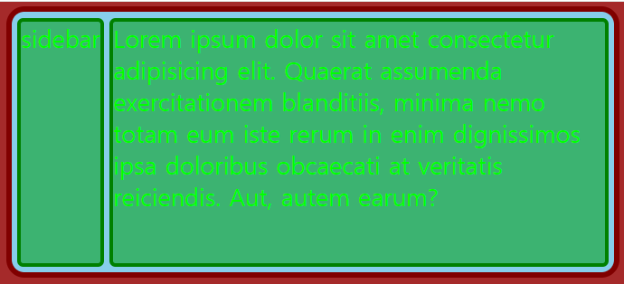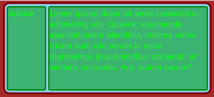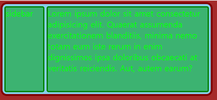 컨텐츠를 넣어보면 내부의 컨텐츠가 많아지므로 사이즈가 맞춰져 커지고 사이드바는 고정값이지만 줄어든다.