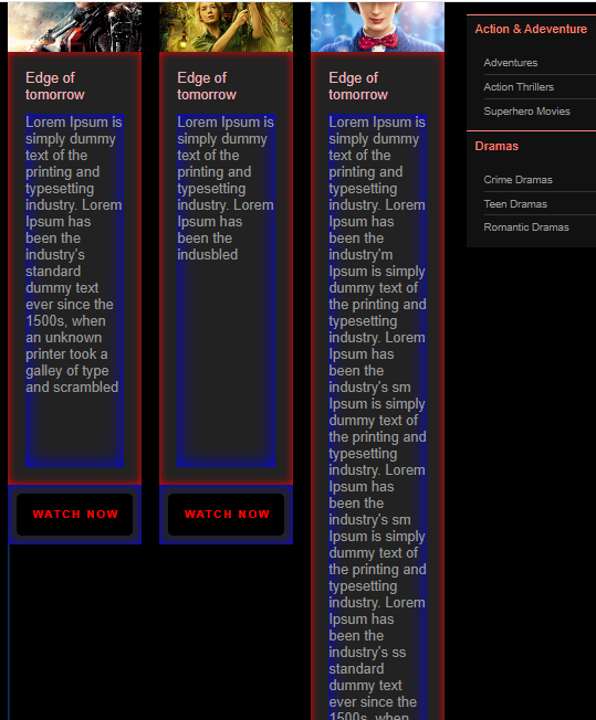 콘텐츠 내부 p가 레이아웃이 다르게 나오는 것을 볼 수 있는데 전체정렬하기위해 min height를 설정