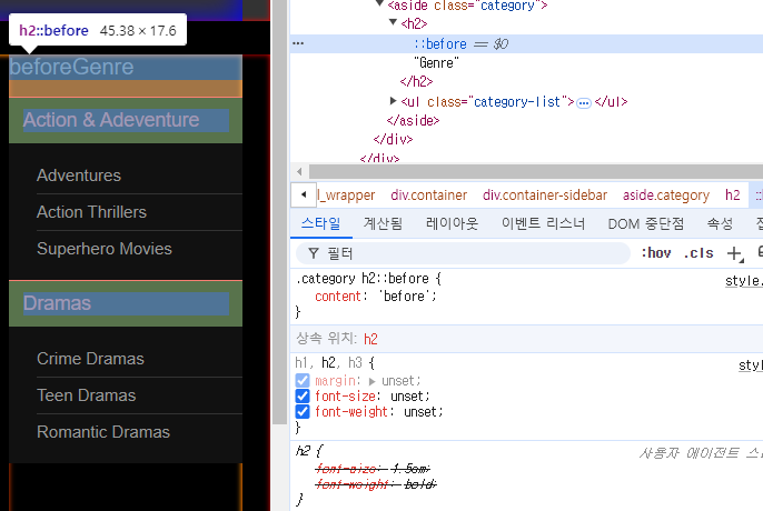 사이드바가 고정값을 지정되어있기에 넘치지는 않지만 내부 컨텐츠가 넘칠경우 문제가 생긴다.