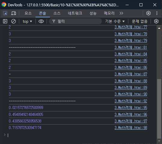 Math.random 을 하면 0이상 1미만의 값이 랜덤으로 리턴▼
