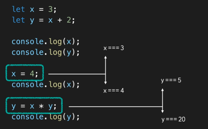 위와 같이 변수에 값들이 재할당되면, 그 시점 기준으로