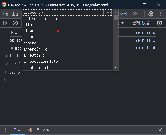 또한 title에 점을 한번 찍어주면 수많은 프로퍼티들이 존재하는 걸 확인할 수 있다. ▼