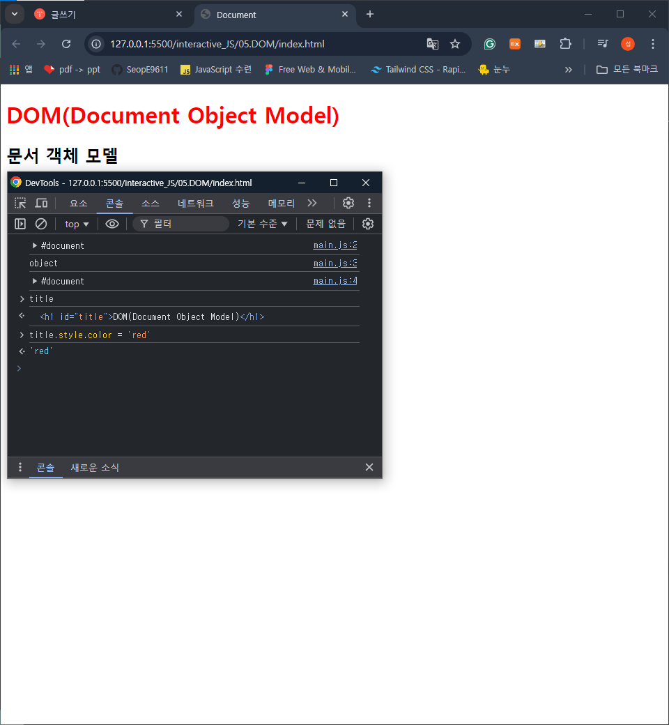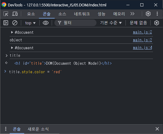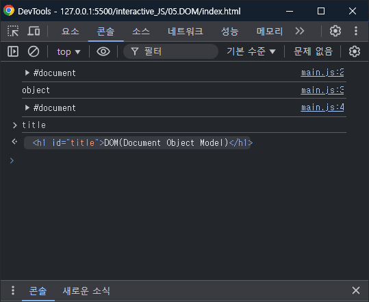 이렇게 접근한 title id를 가진 h1 태그가 출력되는 걸 확인할 수 있다.