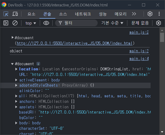 ▼ 콘솔에 documnet 객체를 출력