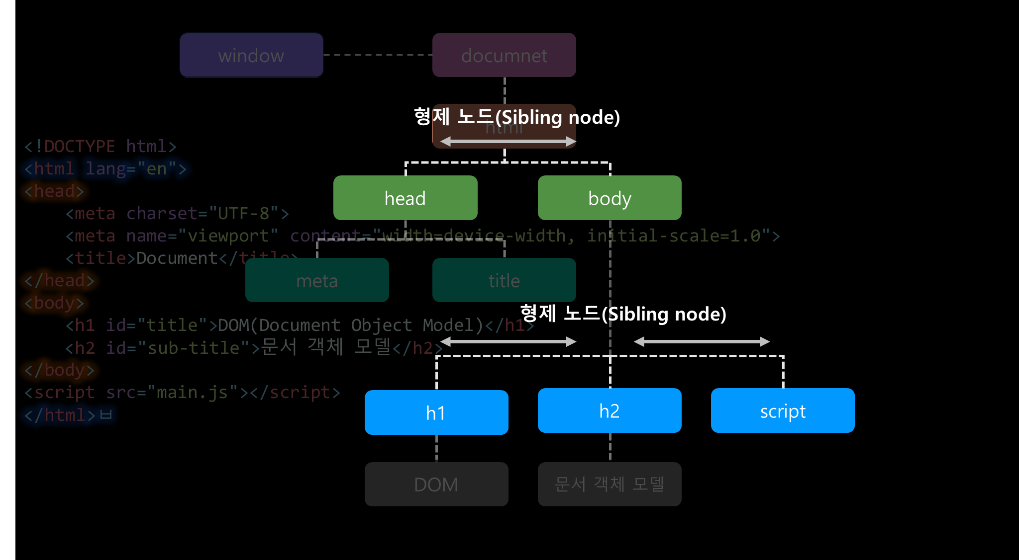 그리고 이미 사용해봤던 document 객체가 이 웹 문서의 최상단 객체로 진입점의 역할을 하며,