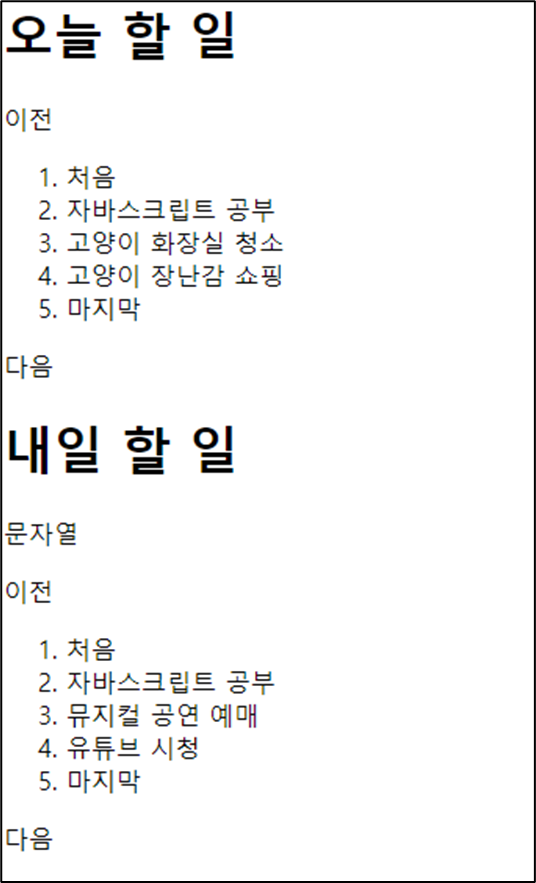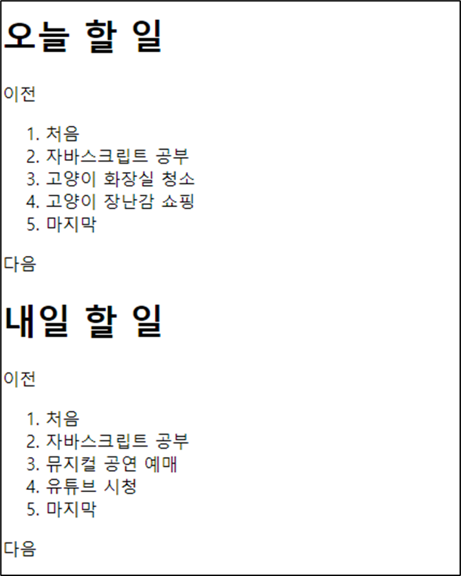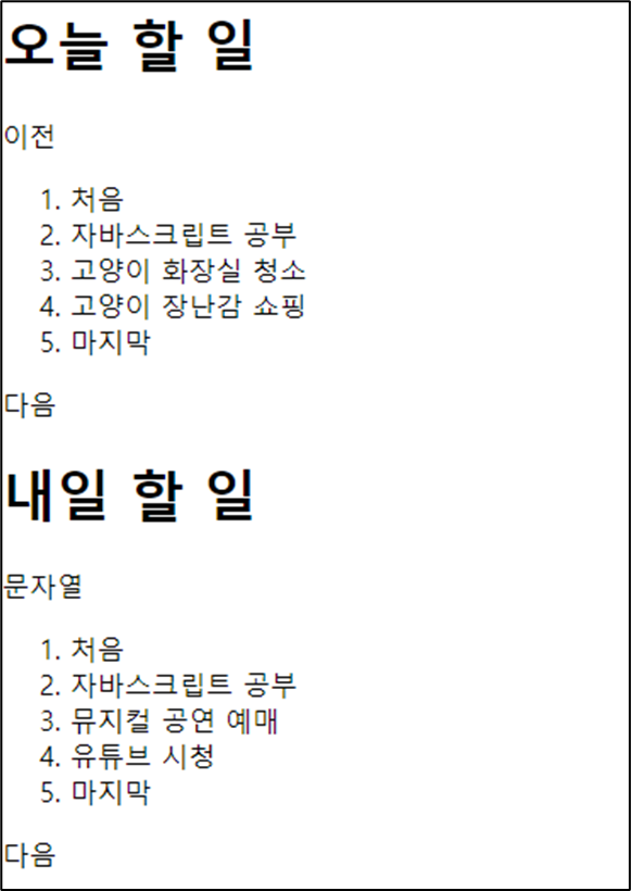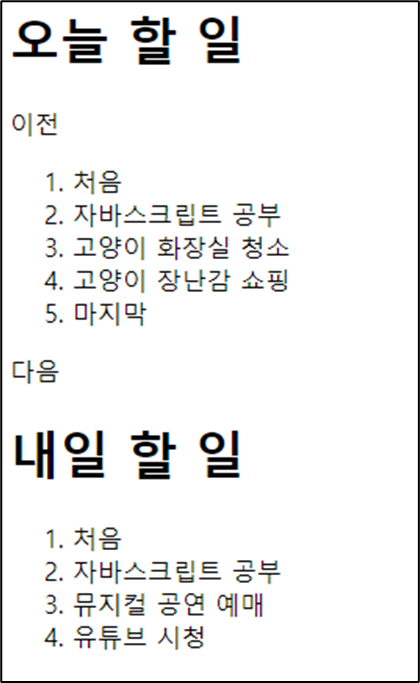 '오늘 할 일'의 '처음' 이라는 부분을 '내일 할 일'에도 만들기위해 li 태그를 만들었다.