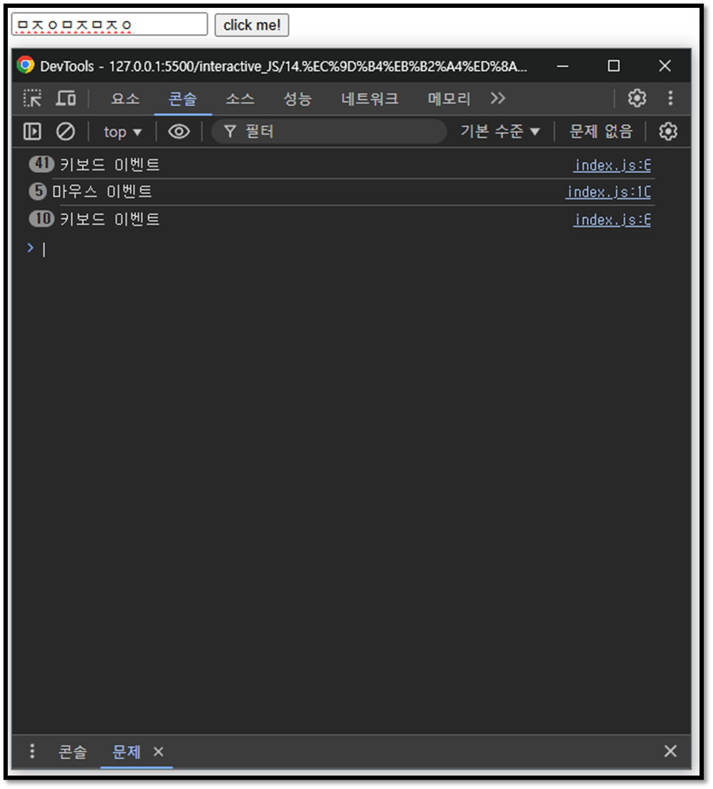 클릭 이벤트가 발생할 때도 이벤트 객체가 콘솔에 출력될 것이다.