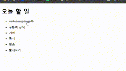 할 일 목록에 아이템을 클릭하면 취소선이 그어지면서 완료된 모습이 되고