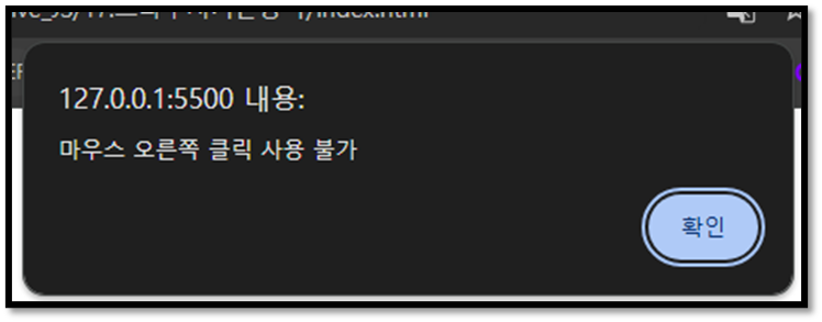 alert("마우스 오른쪽 클릭 사용 불가");