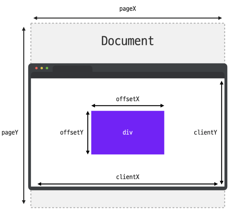 일단 offset 같은 경우에는 이벤트가 발생한 요소 내에서의 포인터 위치를 담고 있다.