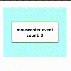 안쪽으로 마우스 커서가 이동할 때만 이벤트 핸들러가 동작하는 모습을 확인할 수 있다.