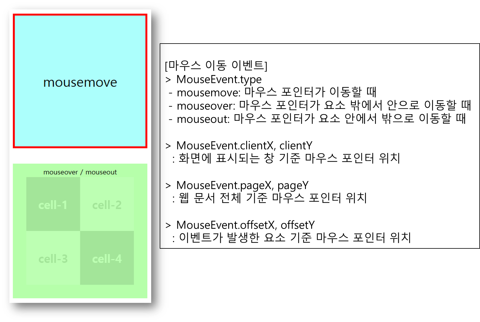 이와 같이 마우스가 이동할 때 발생하는 이벤트에는