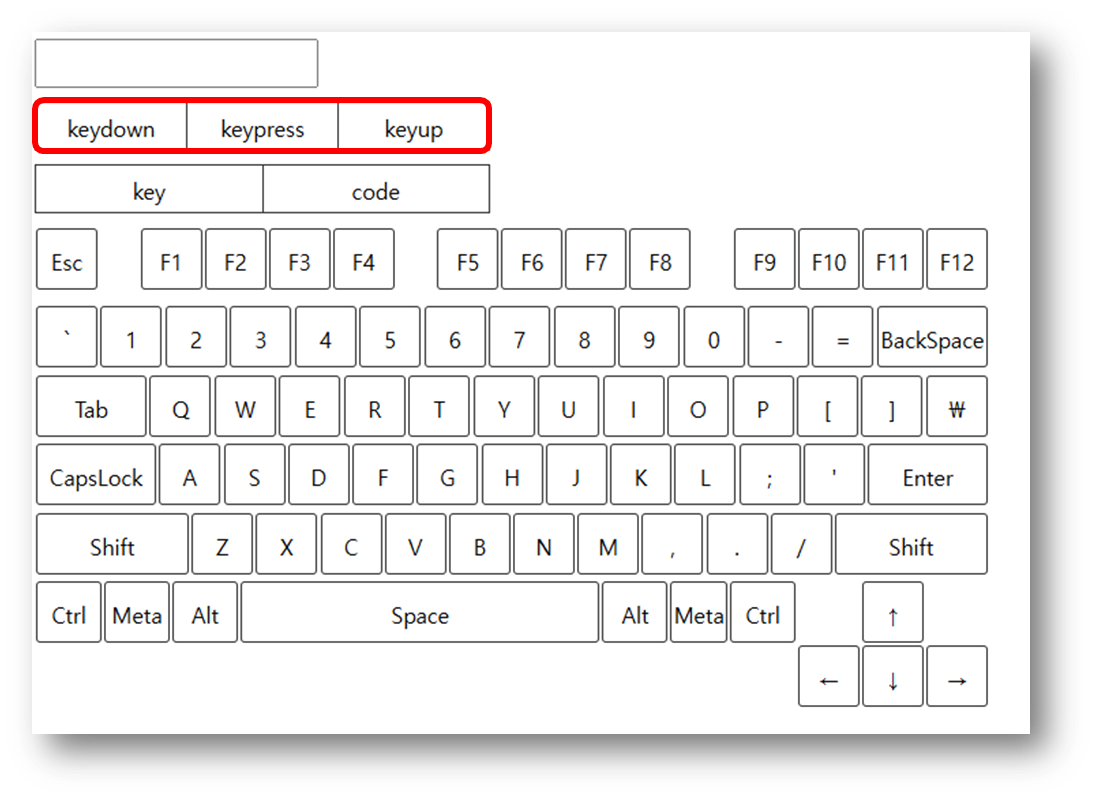 키보드로 할 수 있는 이벤트 타입은 mousedown과 mouseup 처럼