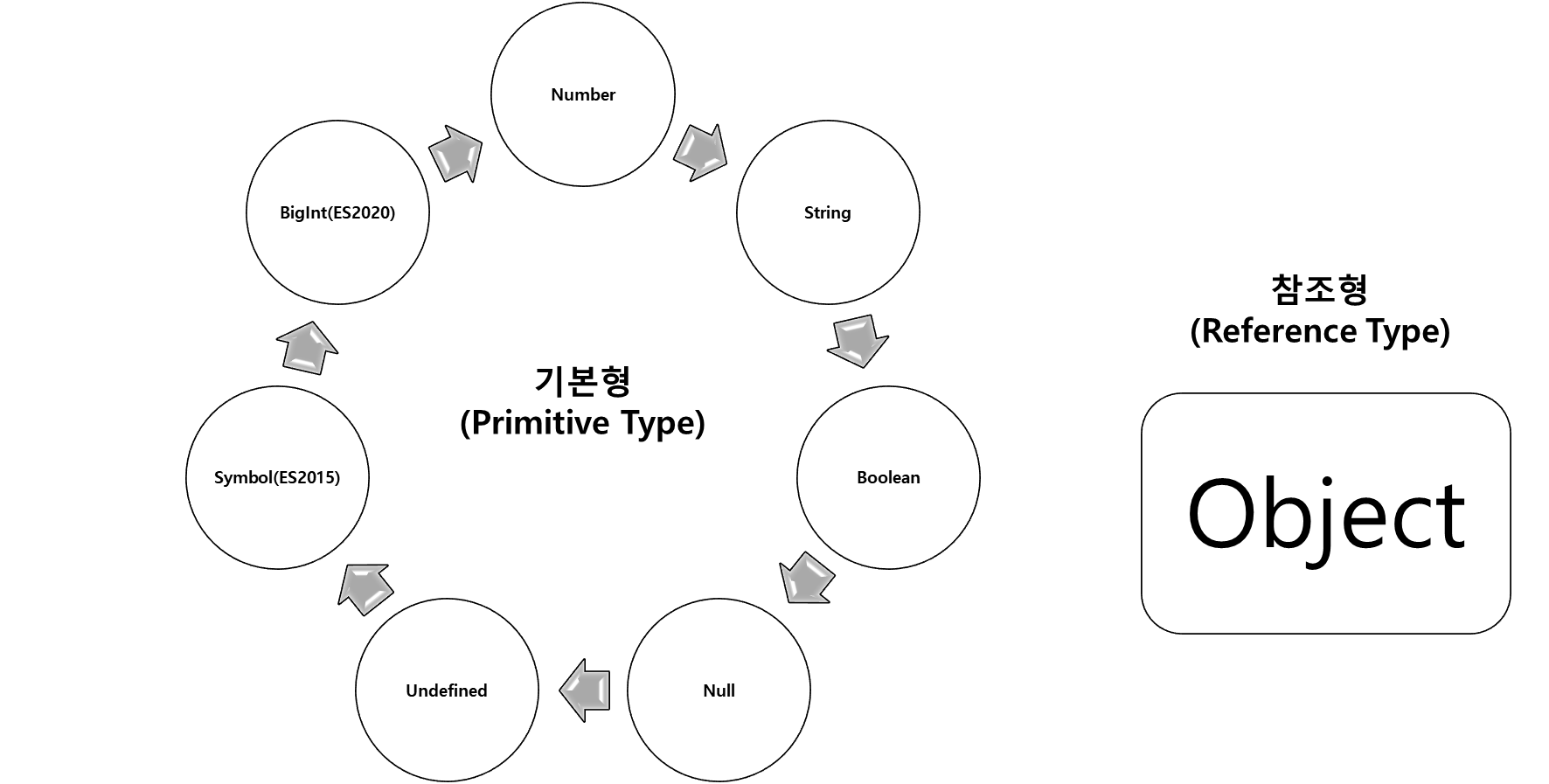 기본형(Primitive Type)과 참조형(Reference Type)로 나누어진