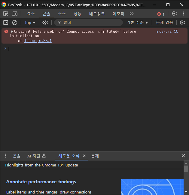 변수의 특성상 선언 이전에 접근을 할 수 없다.