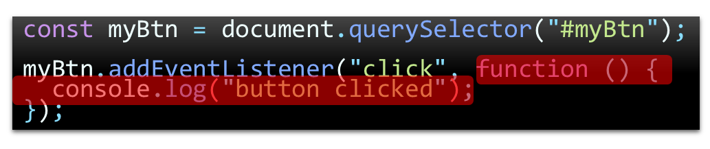 이벤트를 만들 때 addEventListener의 두 번째 파라미터로 함수를 선언해서 전달한 것을