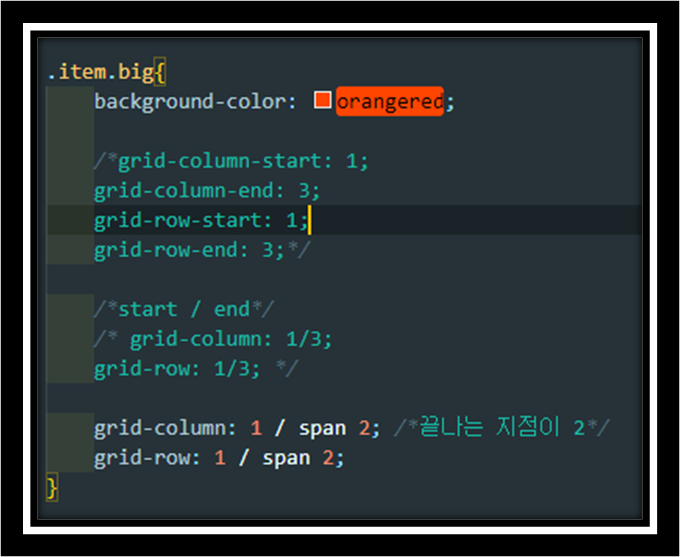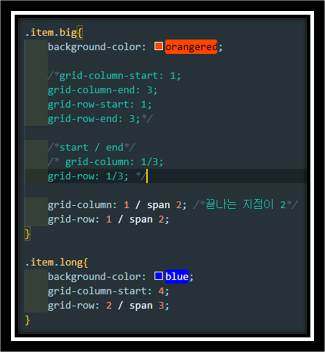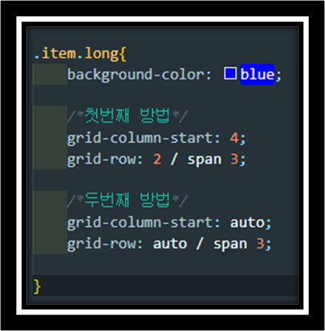 1. grid-column과 grid-row를 모두 명시적으로 (초기값 auto가 아닌 값으로) 지정 하였을 때