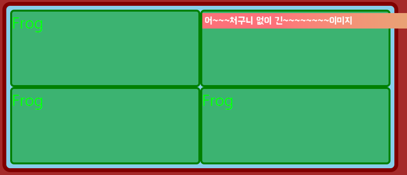 만약 grid-template-rows가 지정된 바가 없다면 하나의 row에 여러 개의 column으로 이루어지게 된다.