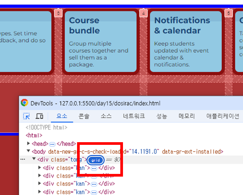 ▼그리드 작업을 하기위해 .tong 에 column 개수 3개이고 rows 개수는 2개임을 확인한다