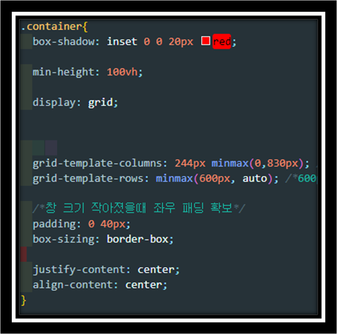 ▼ 창 크기 작아졌을때 좌우 패딩 확보하고 창 크기에 따라 변화가 있어야 하므로 minmax 지정하여 max-width로 변화