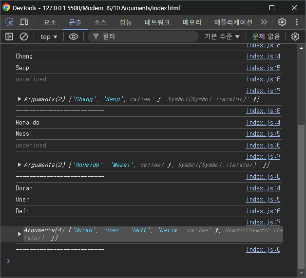 시각화 하기위해 arguments 객체를 출력해보면