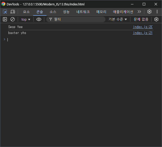 반복하지만 this는 함수를 호출한 객체를 가리키는 키워드이기 때문에