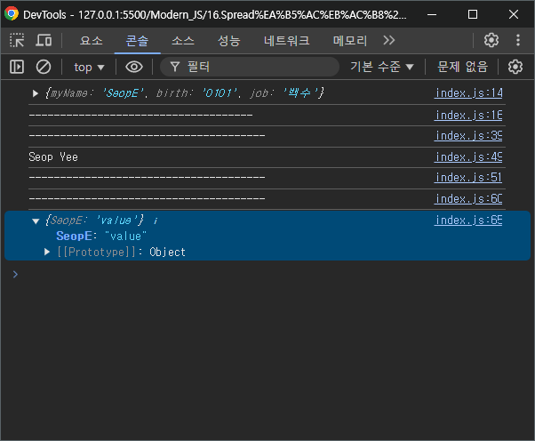 'SeopE' 라는 프로퍼티 네임이 잘 생성된 것을 확인할 수 있다.