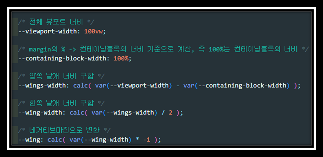 동적으로 변화를 주려면 100vw - wrapper의 너비 *-1 (음수값처리)