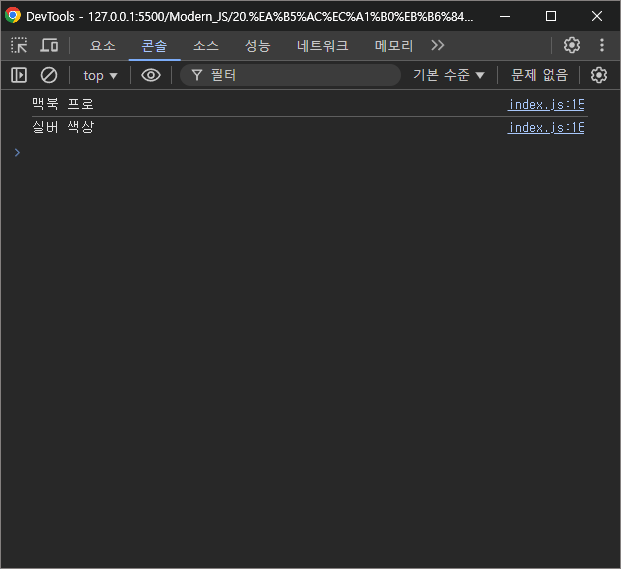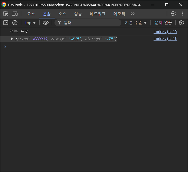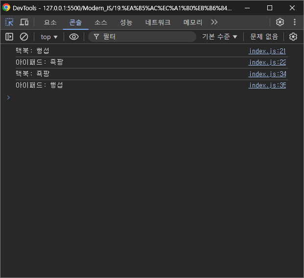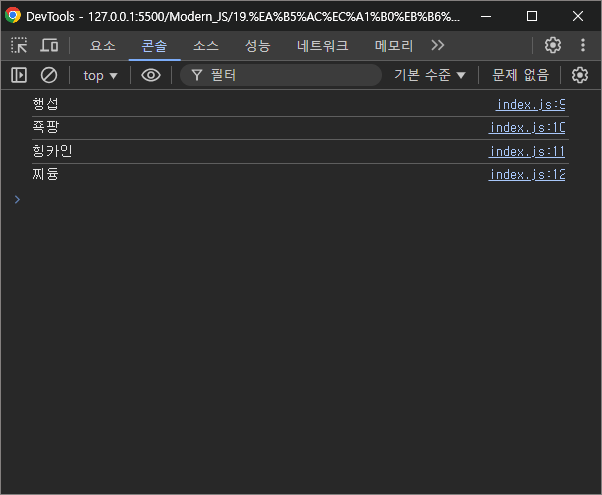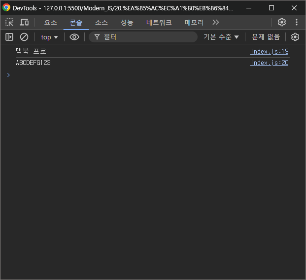 콘솔창을 확인해보면 이전과 똑같이 잘 동작할 것이고