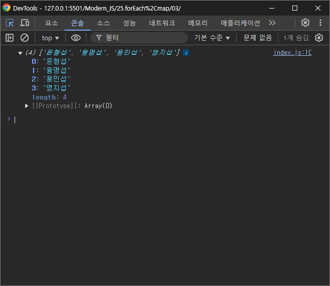 각 요소의 인덱스가 다음과 같이 출력되는 것을 확인할 수 있다.