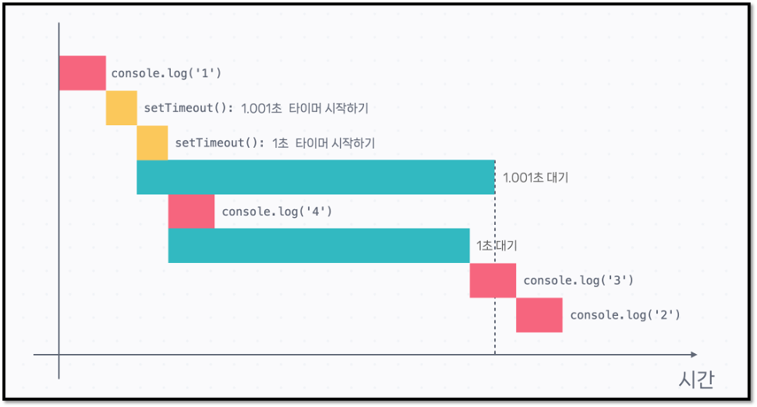 첫 번째 setTimeout()의 타이머가 끝나는데