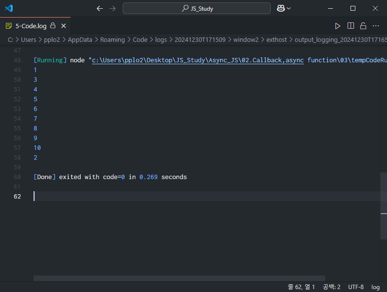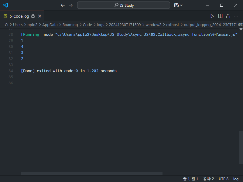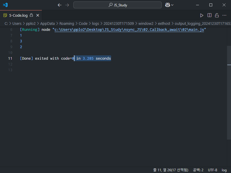 setTimeout 함수 아래 코드들이 먼저 실행되고 콜백이 실행되는 것을 확인할 수 있다.