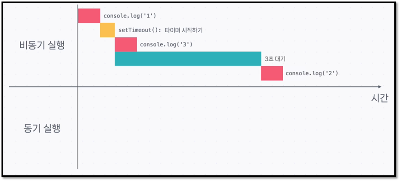 그래서 일단 3이 실행되고 3초가 지나면 setTimeout에 전달된 콜백이 실행된다.