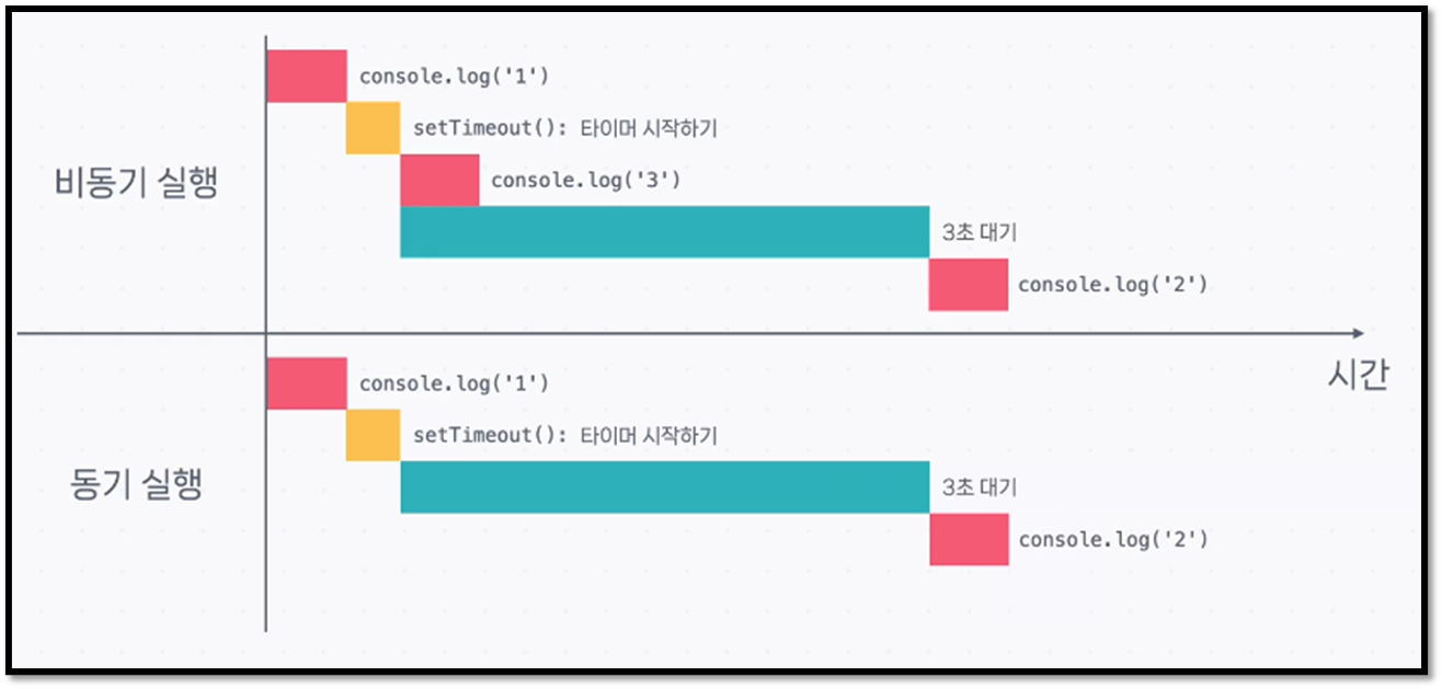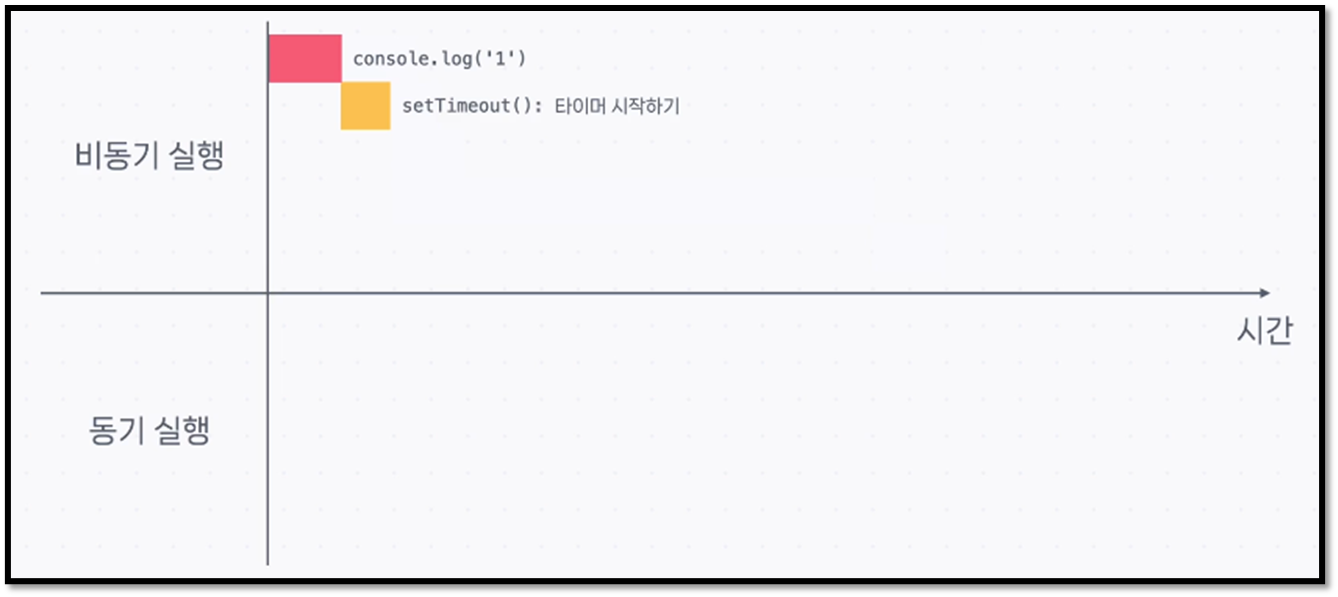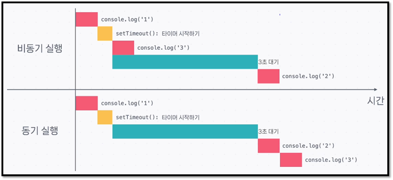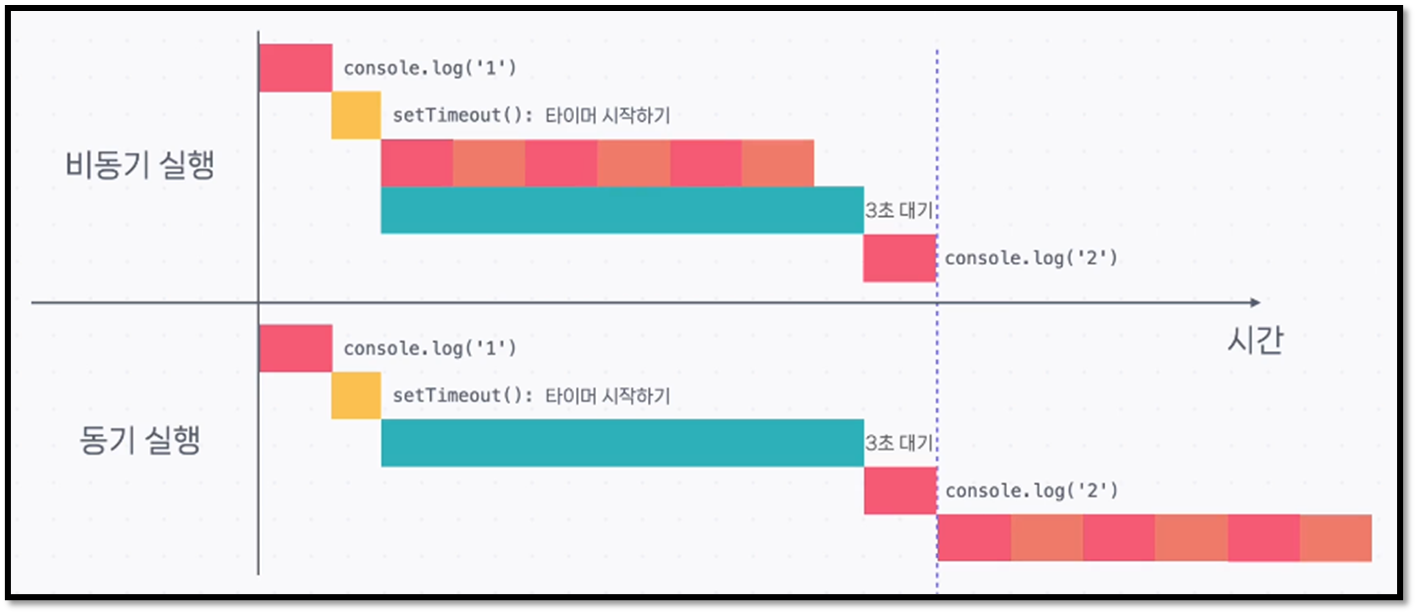 이번엔 setTimeout 함수가 코드를 순서대로 실행하는 동기 함수(synchronous function) 였다고 가정하면
