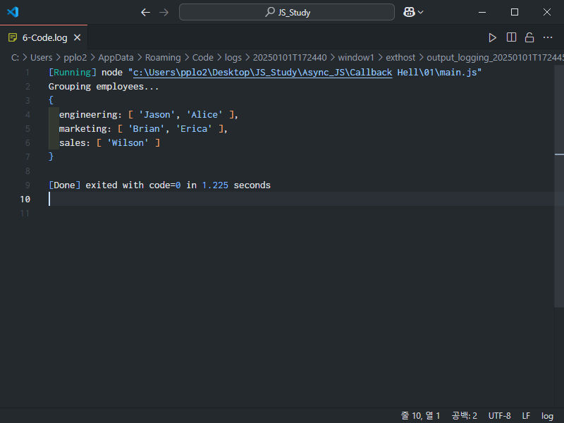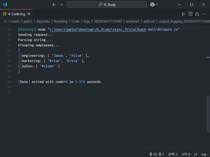 그 다음으로 groupEmployees 함수까지 이어서 실행해보자