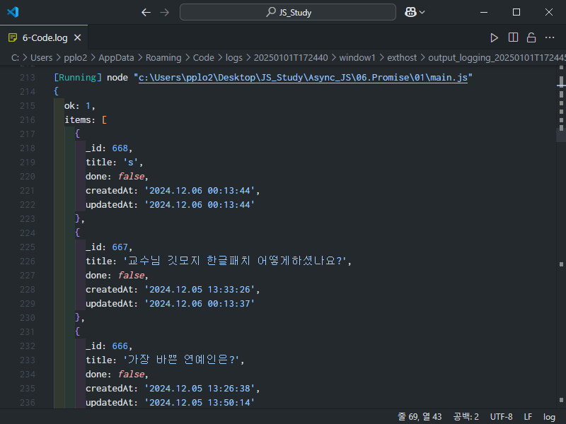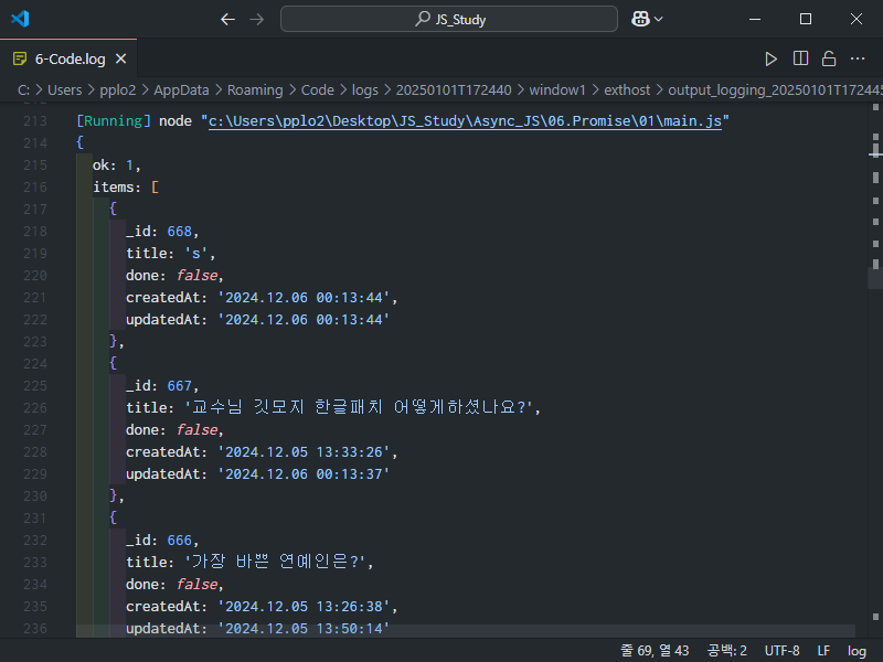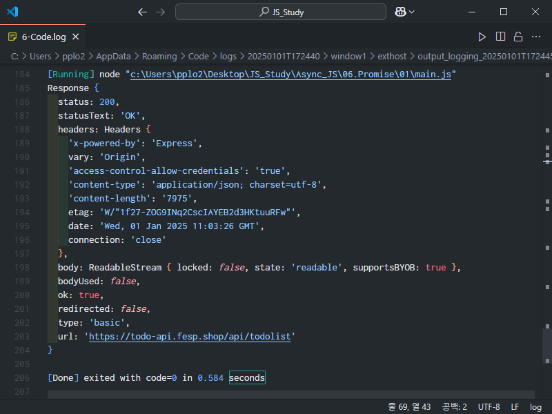 그래서 json 메소드도 await를 사용해보면 데이터가 잘 출력될 것이다.