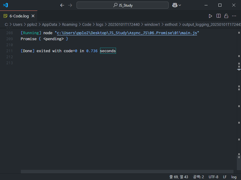 실행해보면 Promise pending이 출력되는걸 확인할 수 있는데