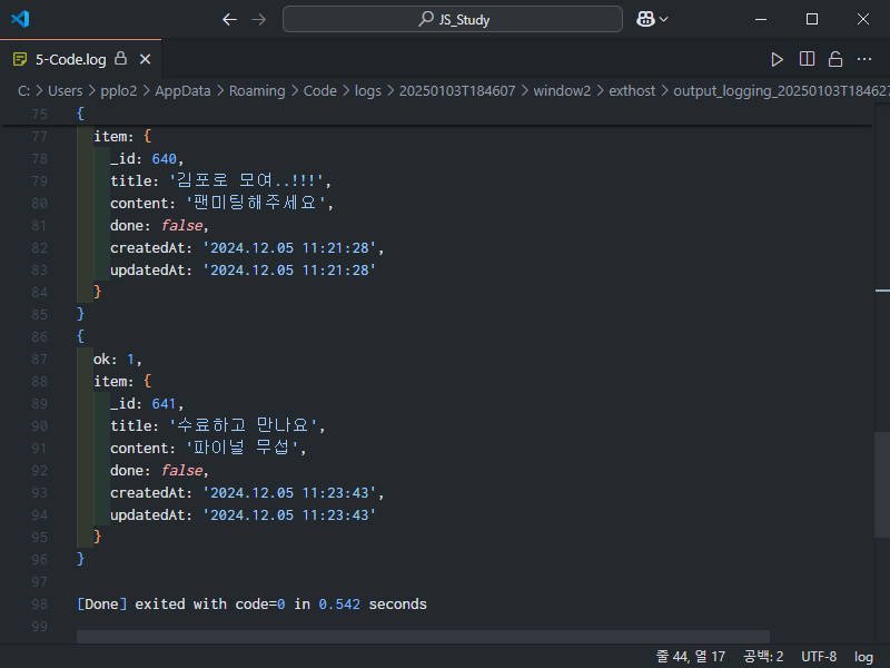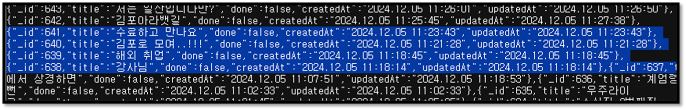 실행 해보면 id가 638번부터 641번까지 정상적으로 출력되는 것을 확인할 수 있다.
