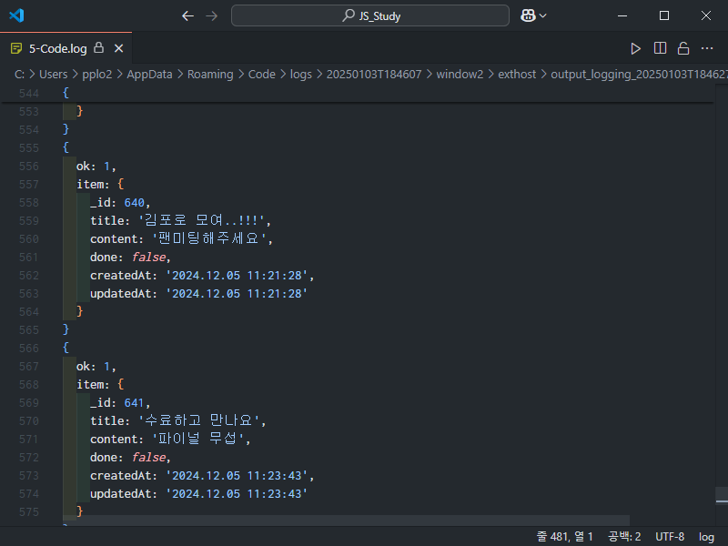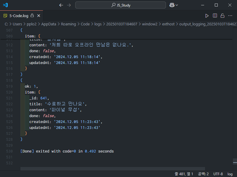 또 돌아와서 데이터를 출력한 다음 (console.log(data))