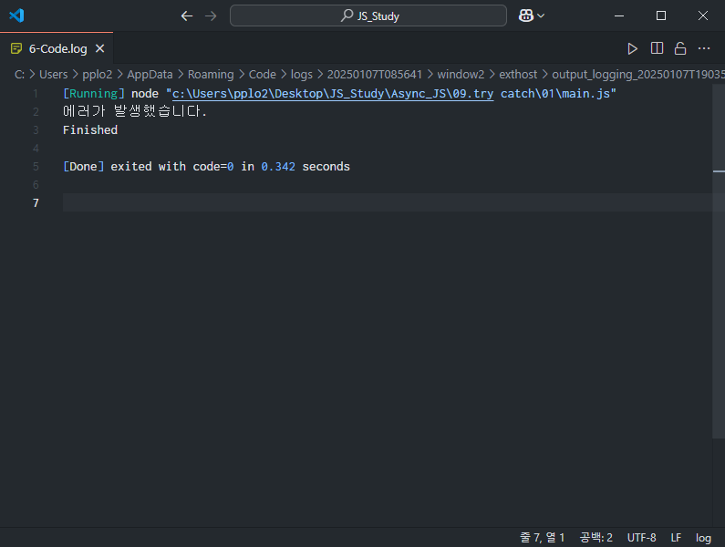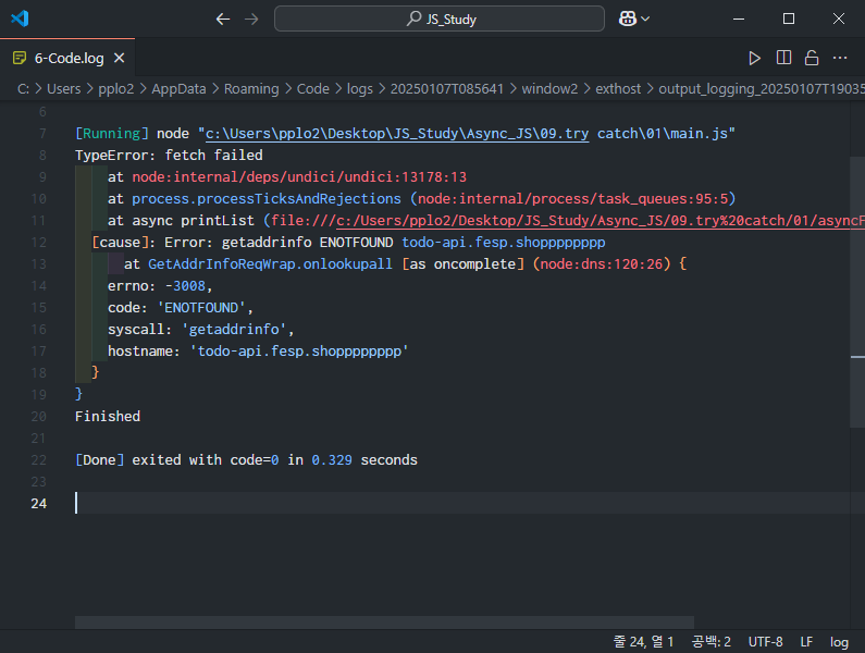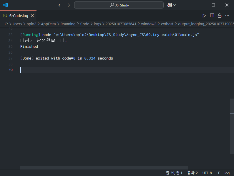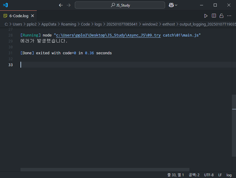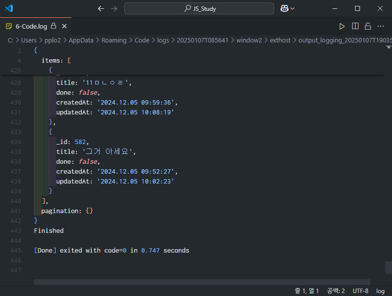 그리고 그 밑에 [Done] exited with code=0 in... 이라고 나와있는데