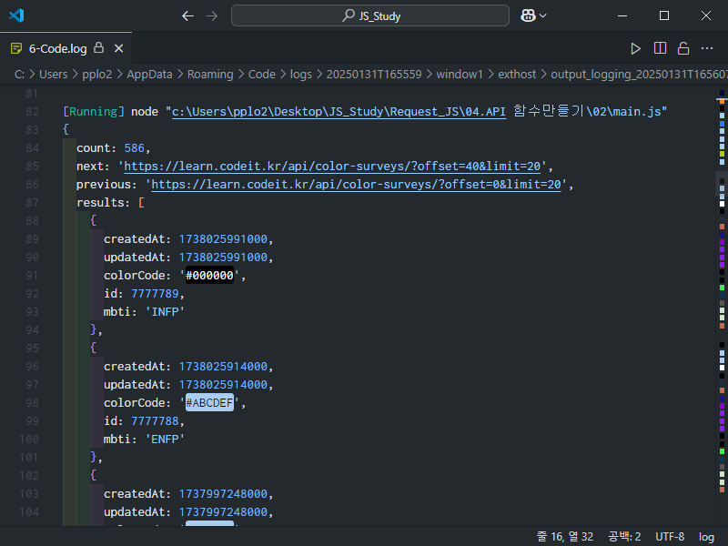 getColorSurvey라는 함수 안에 붙여넣어준다.