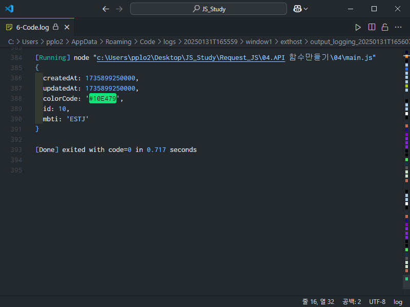 실행해 보면 다음과 같이 리스폰스가 잘 출력되는 것을 확인할 수 있다.