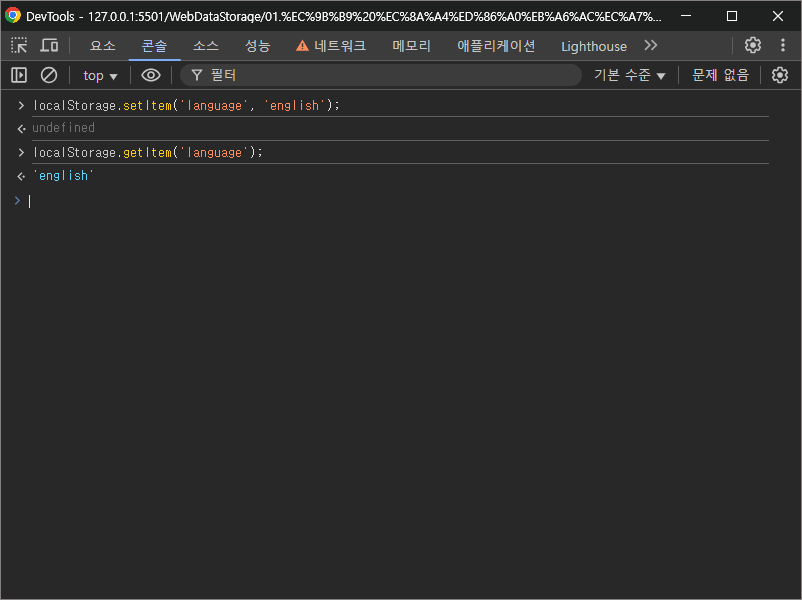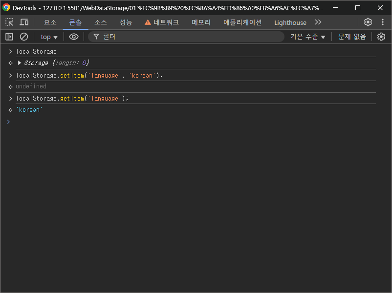 localStorage.setItem('language', 'korean');